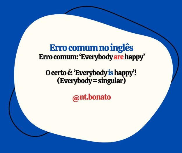 “Everybody are happy.” → “Everybody is happy.” (Everybody é singular!)